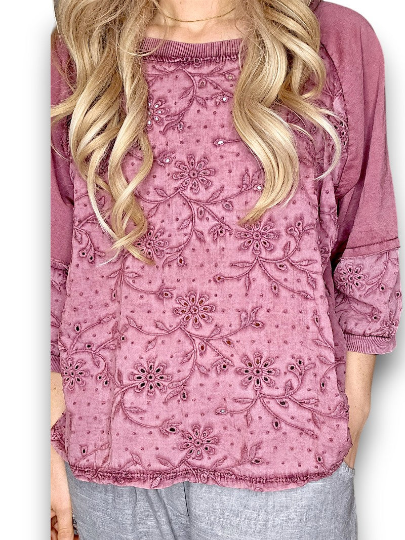 A floaty top with intricate broderie anglaise detailing to the front and sleeve edges, for effortless style.