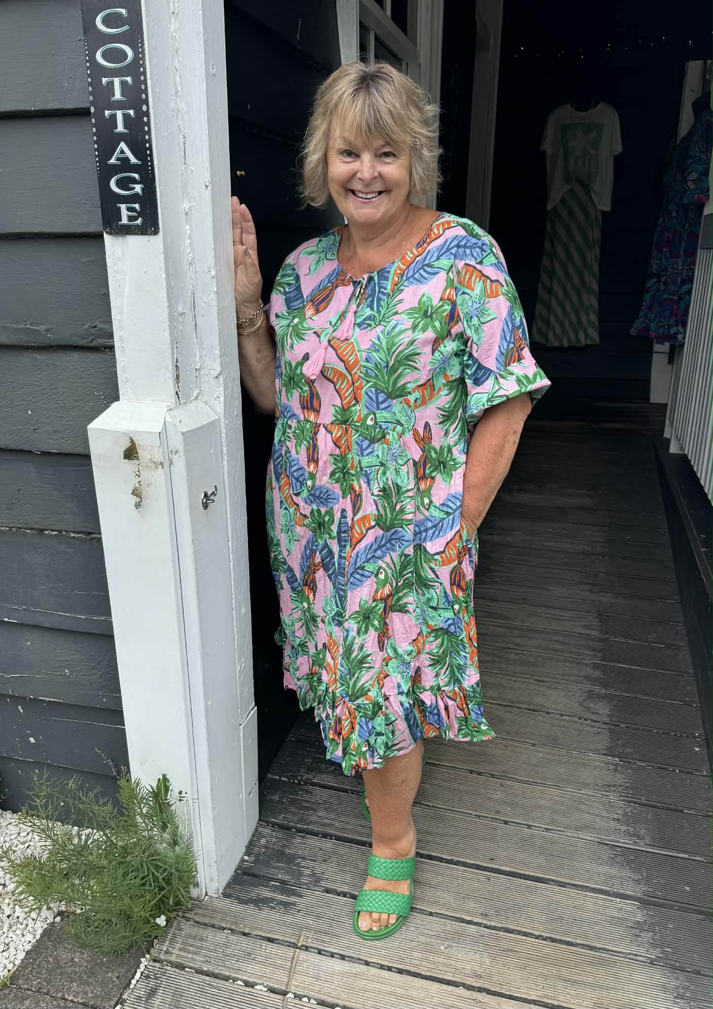 Orientique |Charli Tassel Tie Dress - Toucan Jungle Pink