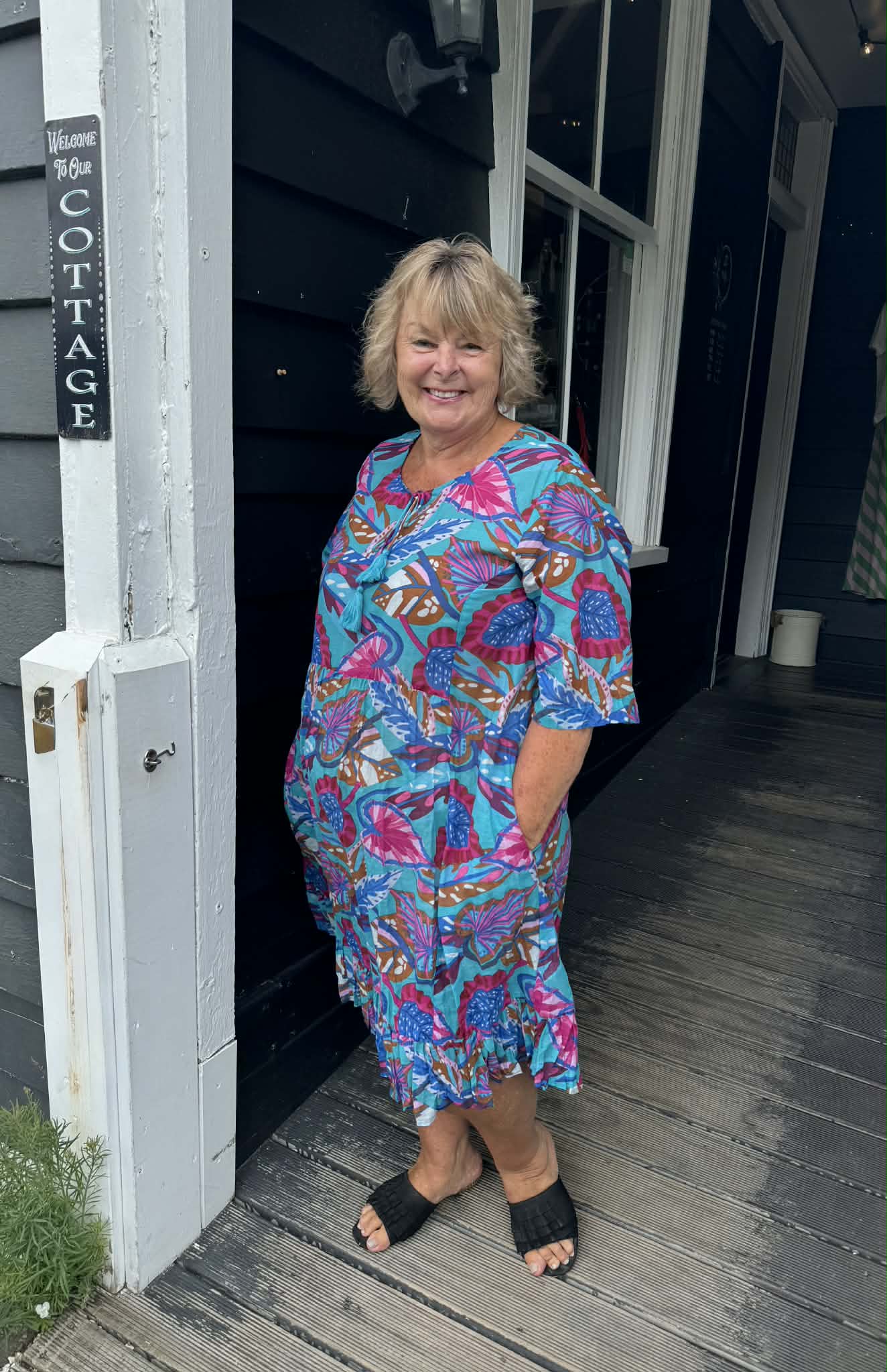 Effortlessly stylish and endlessly wearable, the Charli Tassel Dress is a versatile wardrobe staple designed for comfort and flair. Crafted from 100% cotton, this knee-length dress features a flattering V-neckline with a playful tassel tie-front detail. The smocked waist adds gentle definition, while the tiered skirt creates graceful movement with every step. With its 3/4 sleeves and in-built pockets, this dress blends functionality with relaxed elegance. Perfect for resort wear, daytime events, or casual brunches, the monochrome palette lends a timeless, sophisticated charm
