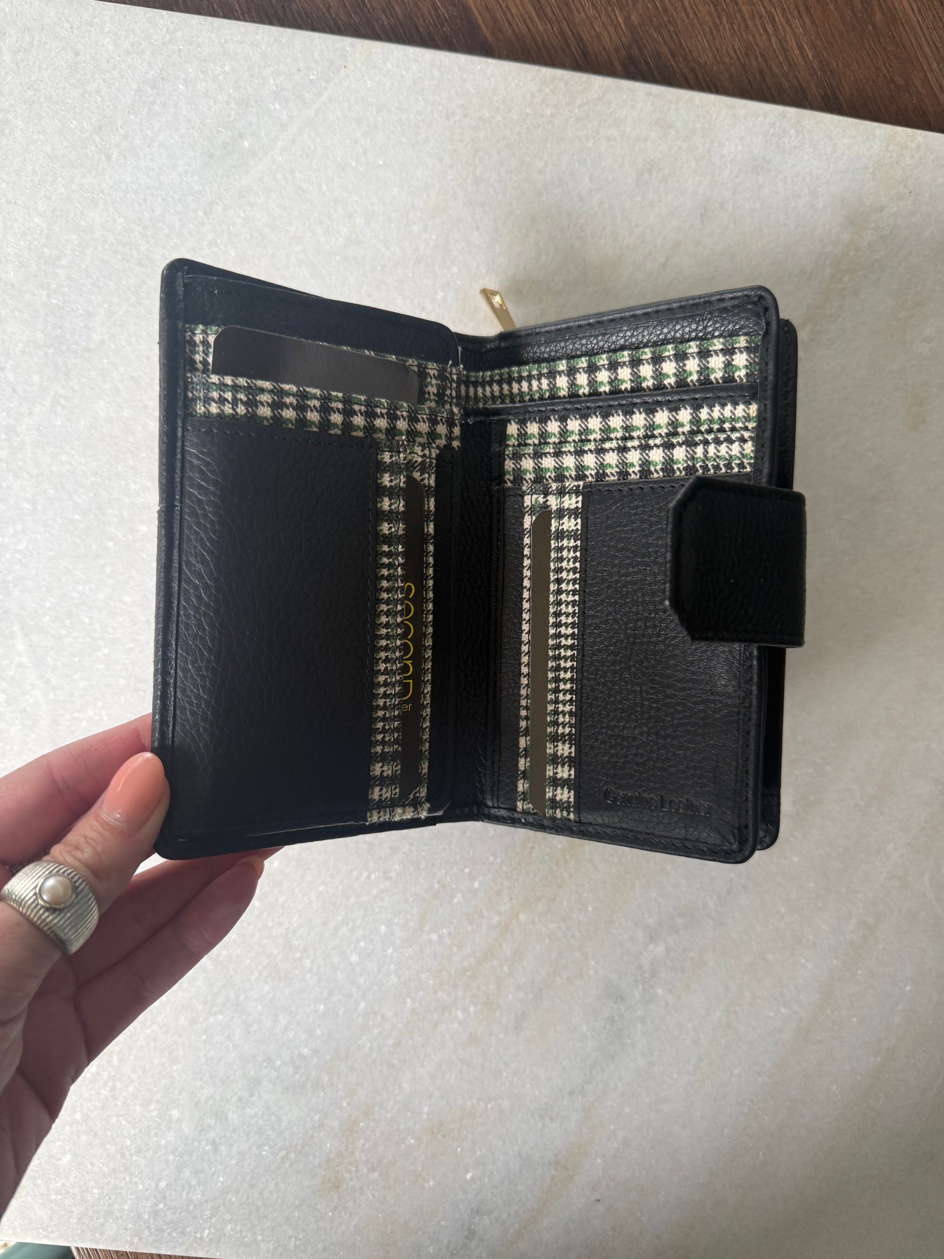 - Soft Genuine Leather Medium Tab Dome Fastening Wallet with Zip Purse